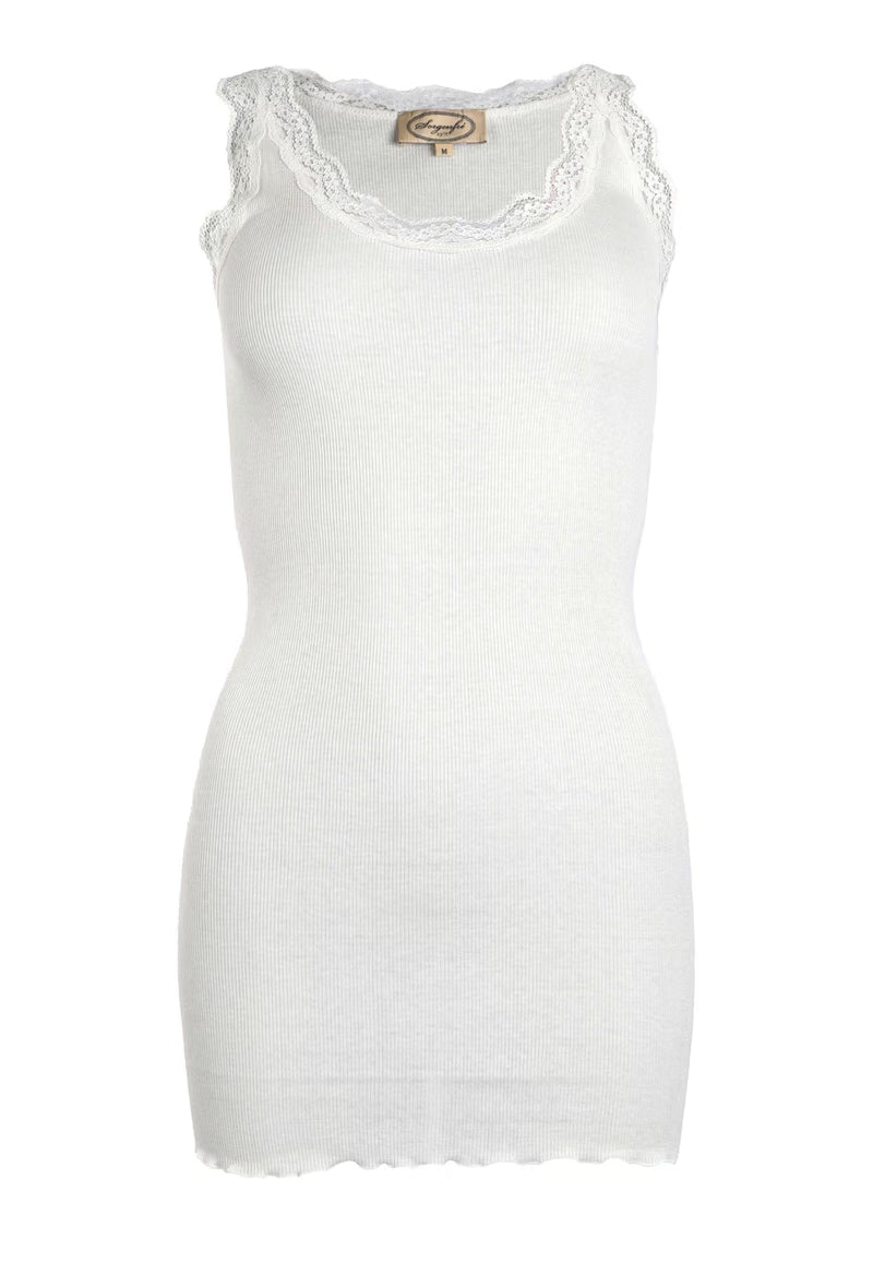 Das Top New Moni von Sorgenfri Sylt ist ein echtes Must Have mit dem gewissen Etwas. Der fein gerippte Stoff schließt mit einem gewellten Saum ab. Der Ausschnitt wird von zarter Spitze umrahmt.