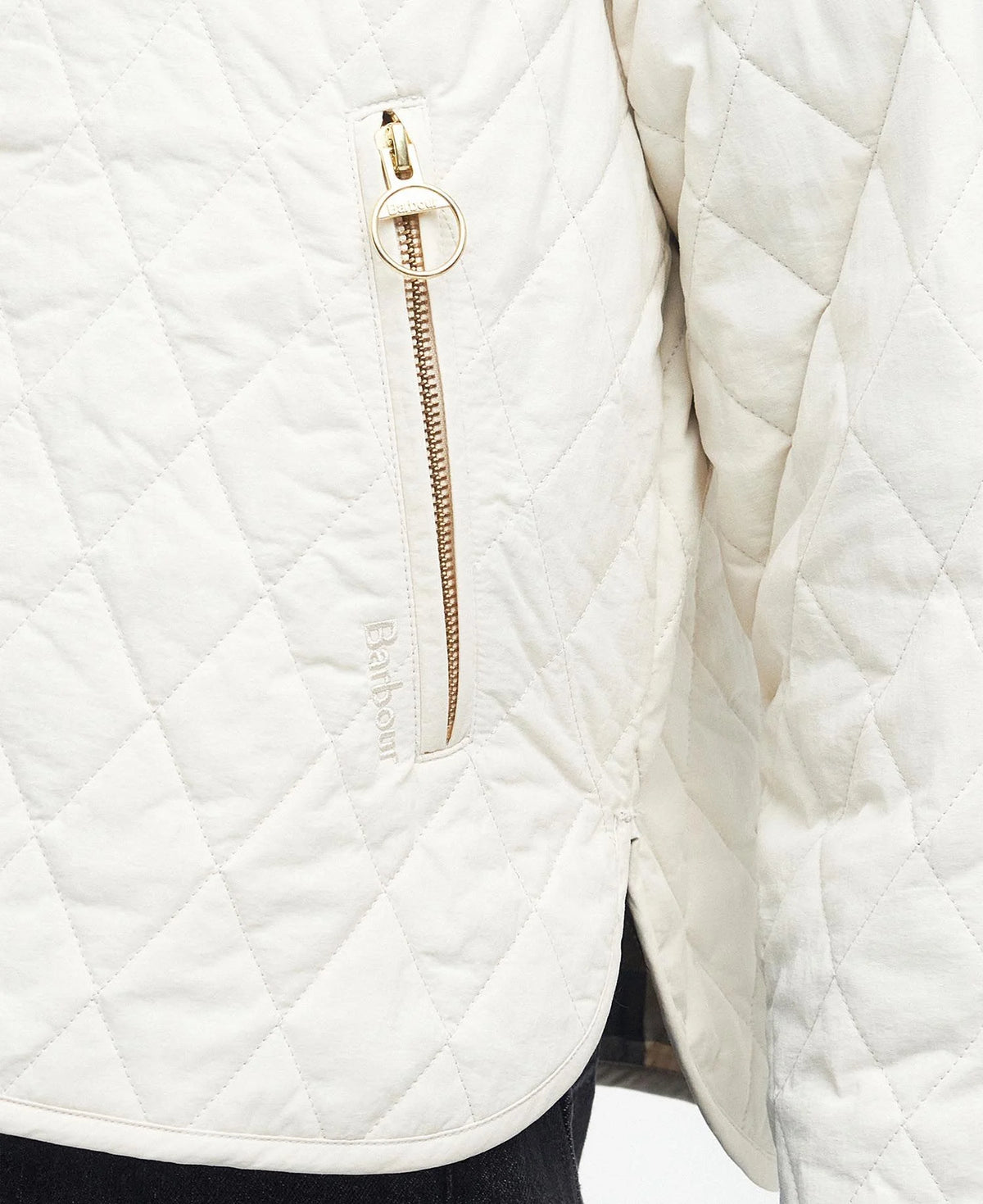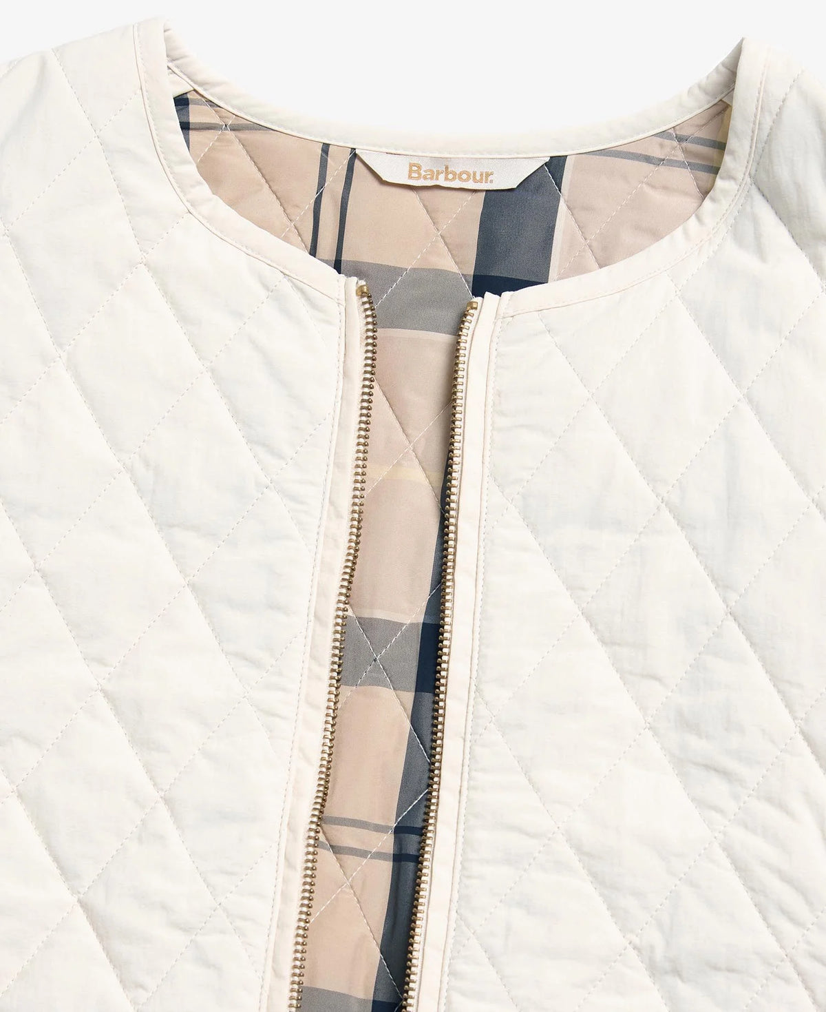 Die Barbour Steppjacke Caroline ist eine moderne Neuinterpretation eines Klassikers. Sie zeichnet sich durch ihren kastenförmigen Schnitt, einen Rundhalsausschnitt und einen sichtbaren Reißverschluss aus.