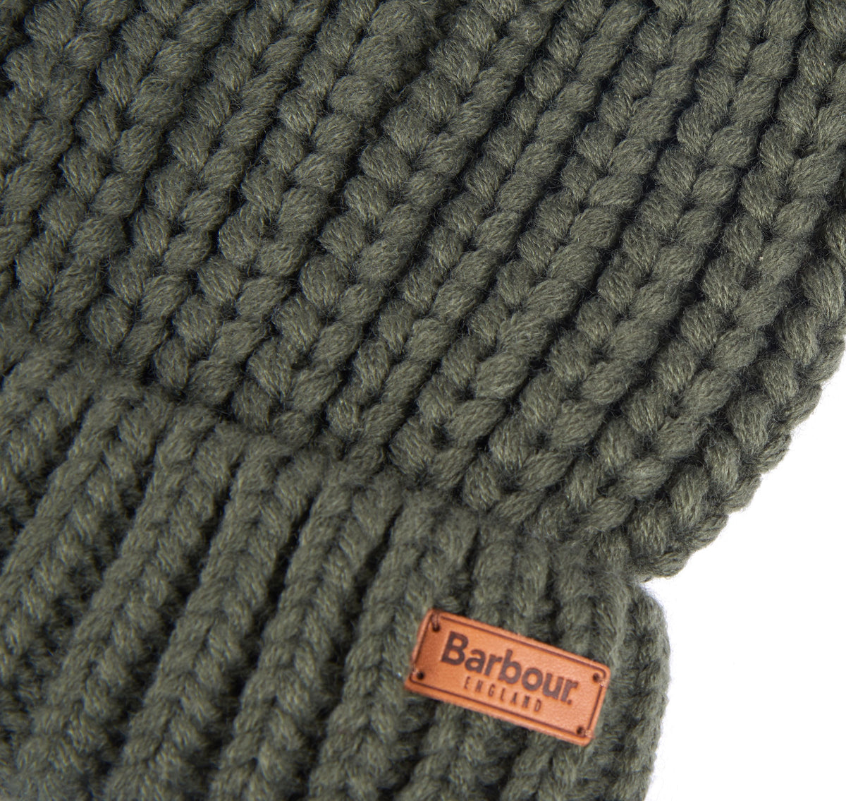 Die gestrickte Barbour Saltburn Beanie überzeugt durch ihren Kunstpelz-Bommel mit Eleganz.