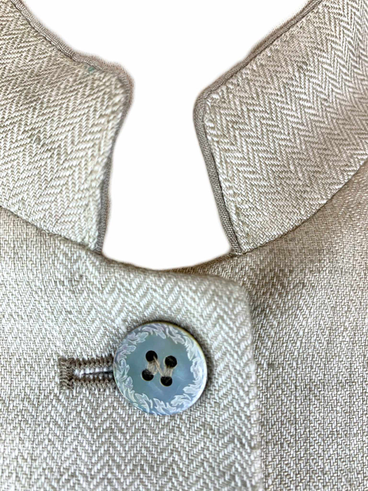 Schicker zeitloser Damen-Blazer aus Leinen mit Stehkragen und Schälchen am Rücken.