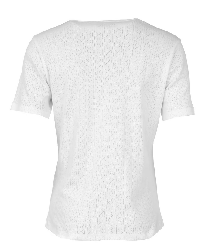 Das T-Shirt Maren von Sorgenfri Sylt hat eine tolle Passform und lässt sich zu allem kombinieren. Besonders sind das schöne Ajour-Muster und die kleine Muschelkante am Ausschnitt.