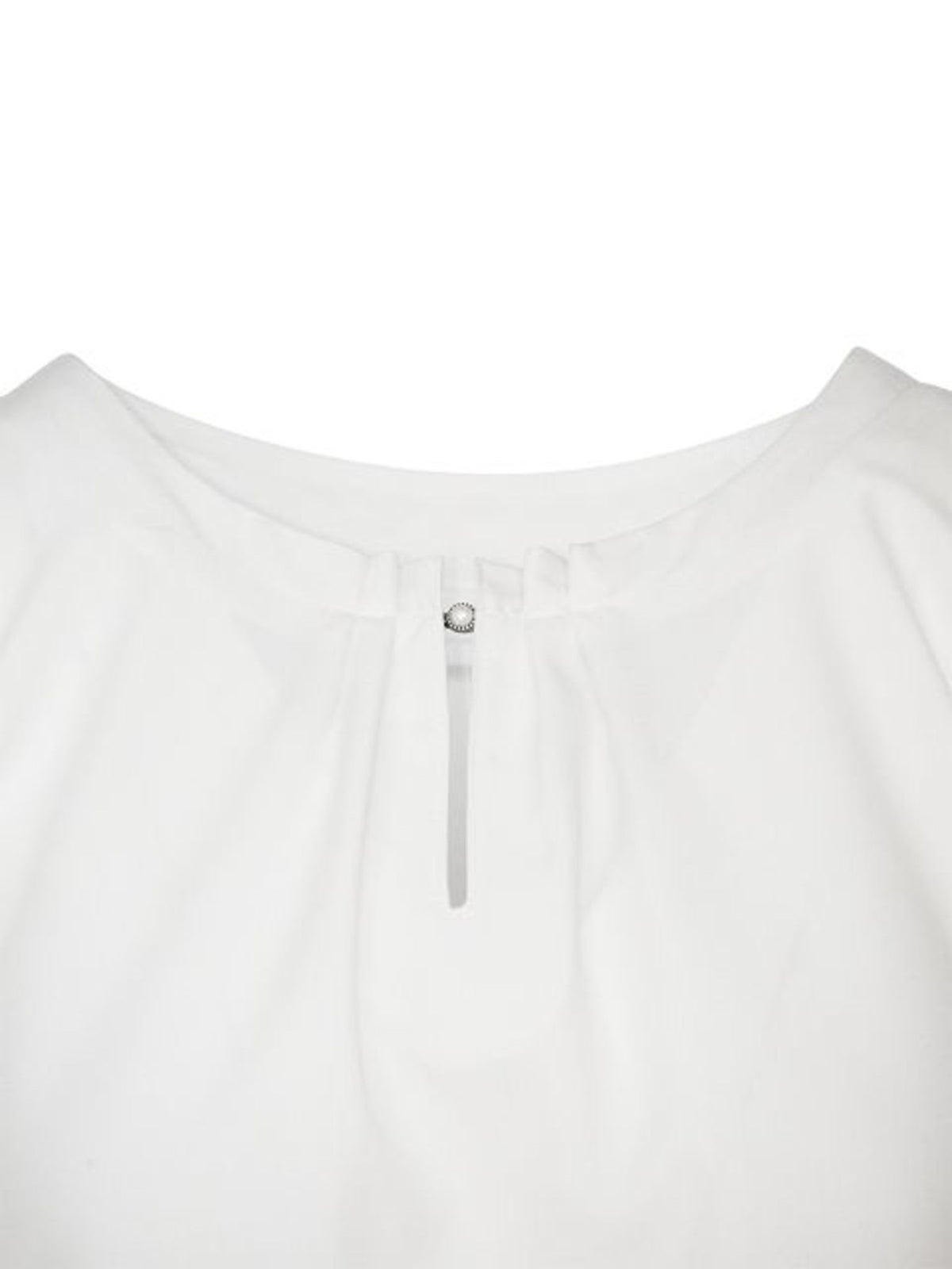 Die luftige Kurzarmbluse Babet / Durach von Felicitas präsentiert sich mit einem charmanten Schmuckdetail am gerafften Halsausschnitt.
