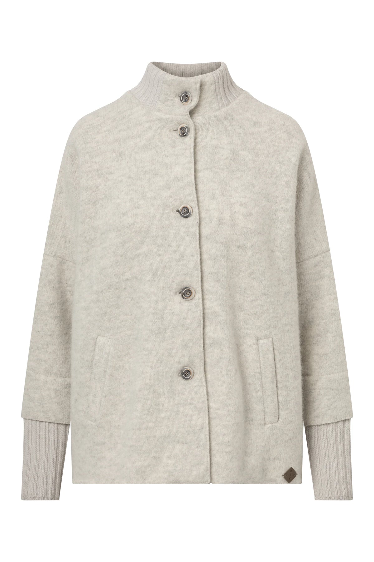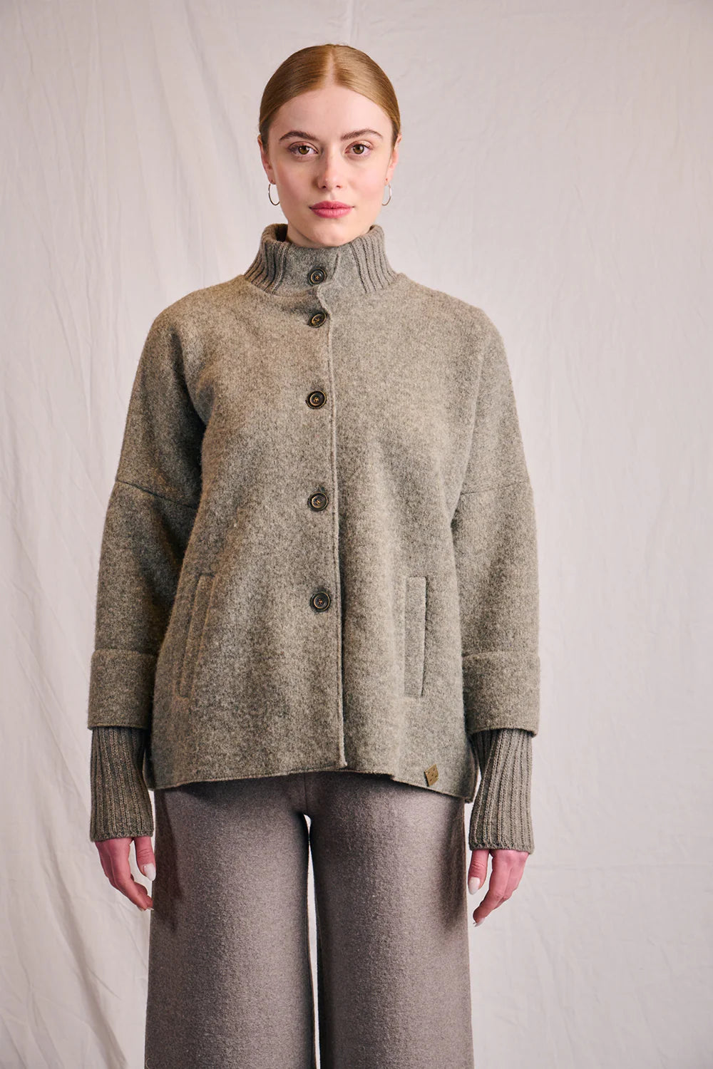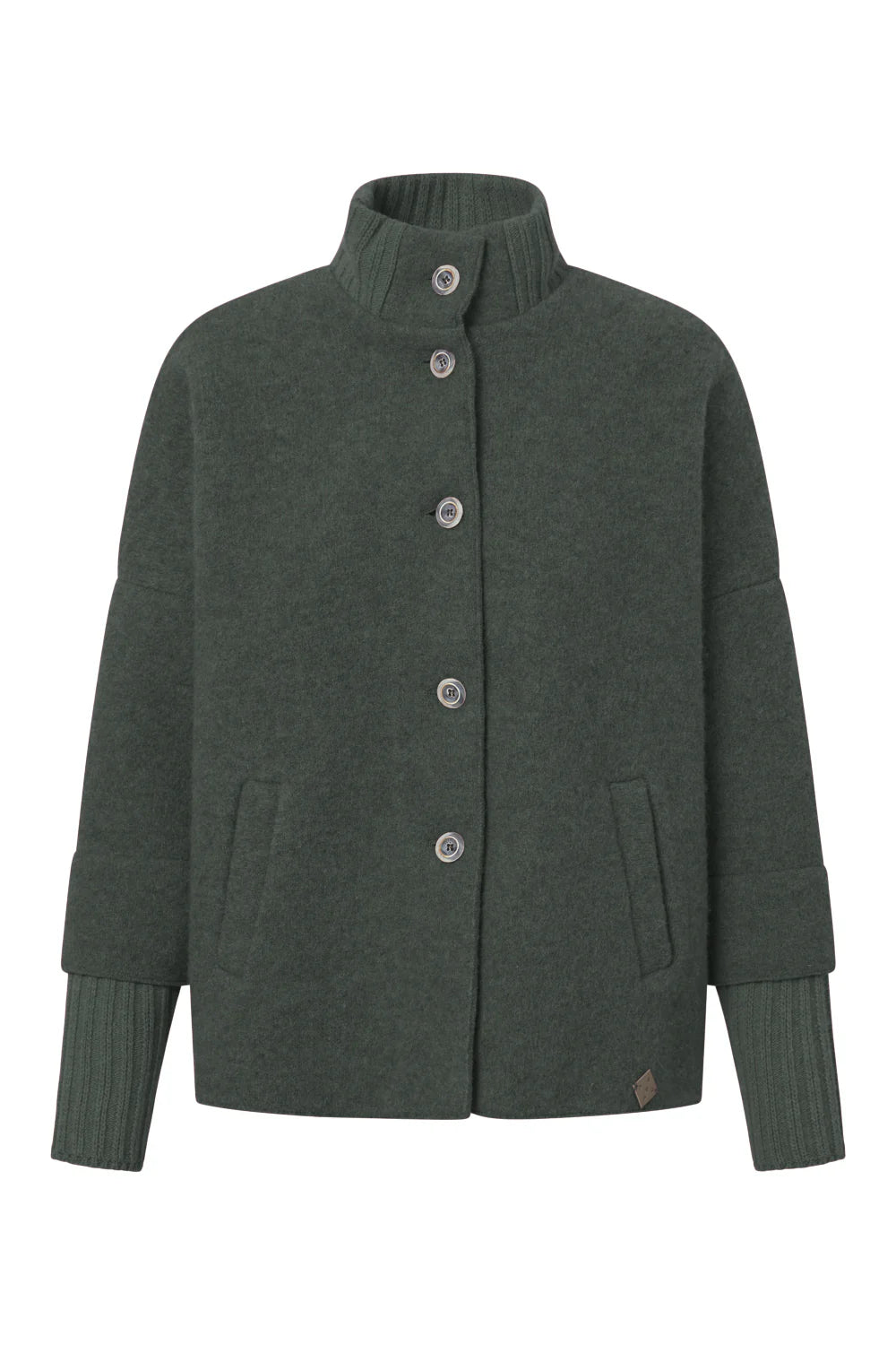 Die Walkjacke Ilsa von Stapf mit gestricktem Kragen und Ärmeln ist eine lässig elegante Jacke, die sich hervorragend mit Jeans oder Röcken kombinieren lässt.