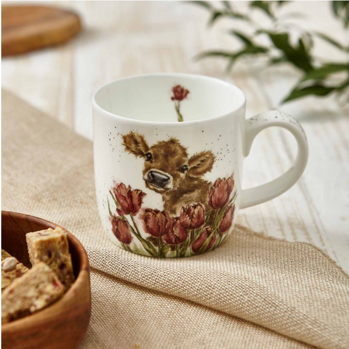Diese wunderschön illustrierte „Bessie“ Tasse aus feinstem Bone-China von Royal Worcester ist ein charmantes Geschenk oder eine stilvolle Ergänzung für Ihre Küche. Die Tasse zeigt ein Kuh Motiv auf der Vorder- und Rückseite sowie ein weiteres kleines Detailbild am inneren Rand.
