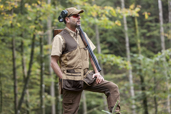 Die Blaser Parcours Schießweste in camel-braun ist ideal für den jagdlichen Einsatz und den Schießstand. Sie bietet zahlreiche Taschen für Kleinigkeiten und Munition. Darunter eine Brusttasche mit Klettverschluss links, zwei Patronentaschen hinten, vier Patronentaschen vorne und eine Innentasche im Schulterbereich für das Schießpolster.