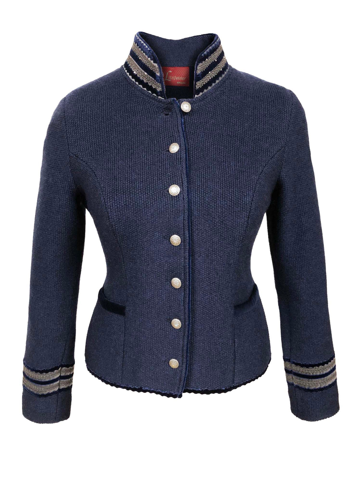Litzlfelder Strickjacke mit edlem Kragen in blau