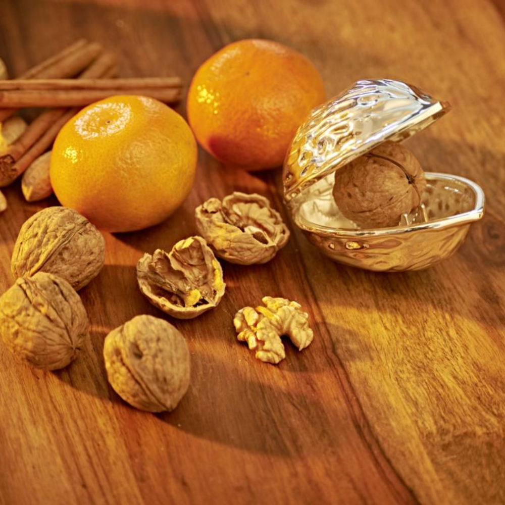 Mit dem versilberten Nussknacker in Form einer Walnuss wird Ihnen das Nüsse-Knacken Freude bereiten. Einfach die Nuss in die Form reinlegen, zuklappen und knacken.