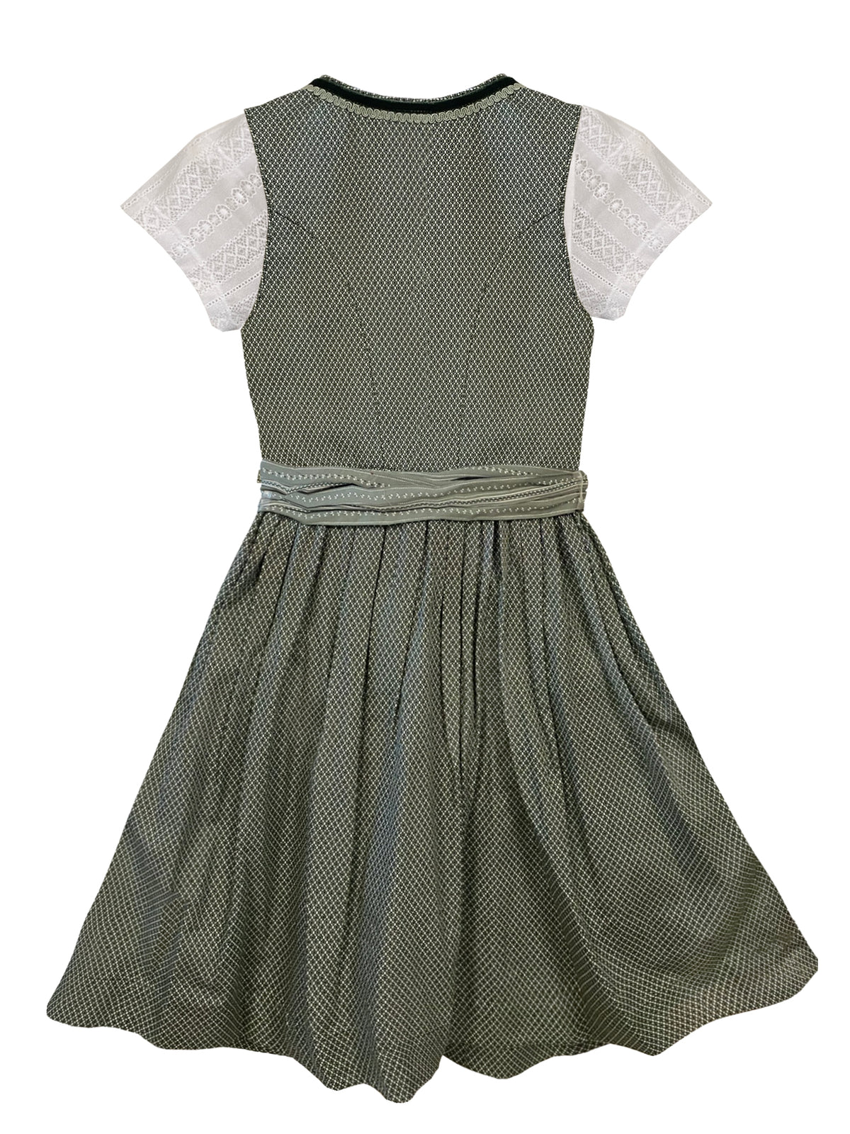 - Farbe: Oberteil und Rock in salbei mit Rautenmuster, Schürze in salbei mit feinen Streifen, Shirt in Weiß