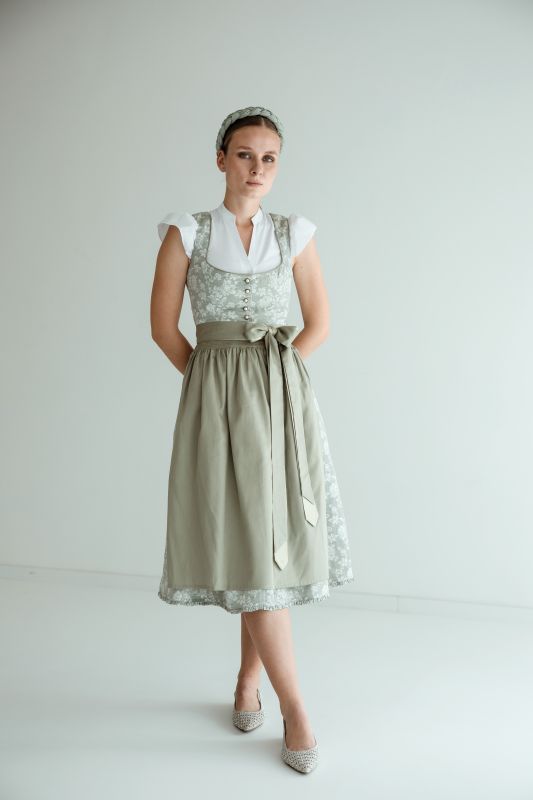 Dirndl Alma aus neuen Frühjahrskollektionvon Alpenfee kombiniert edlen Jacquardstoff mit satinierter Baumwolle zu einem eleganten und zugleich femininen Look. Das blumige Muster in der Trendfarbe Mint verleiht dem Dirndl eine frische, moderne Ausstrahlung. Praktische Details wie zwei Eingriffstaschen und eine separate Handytasche machen es besonders alltagstauglich. Ein stilvolles Highlight für jede Gelegenheit!