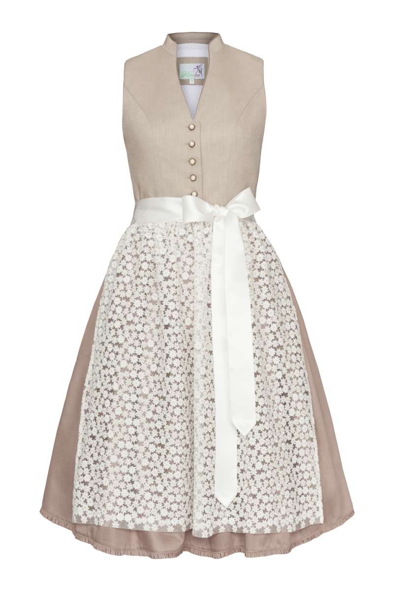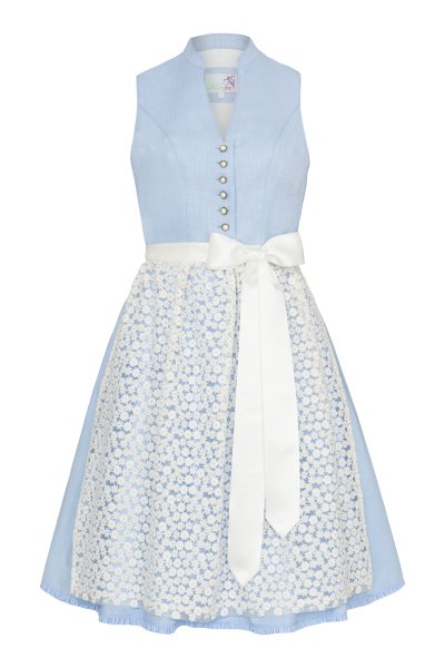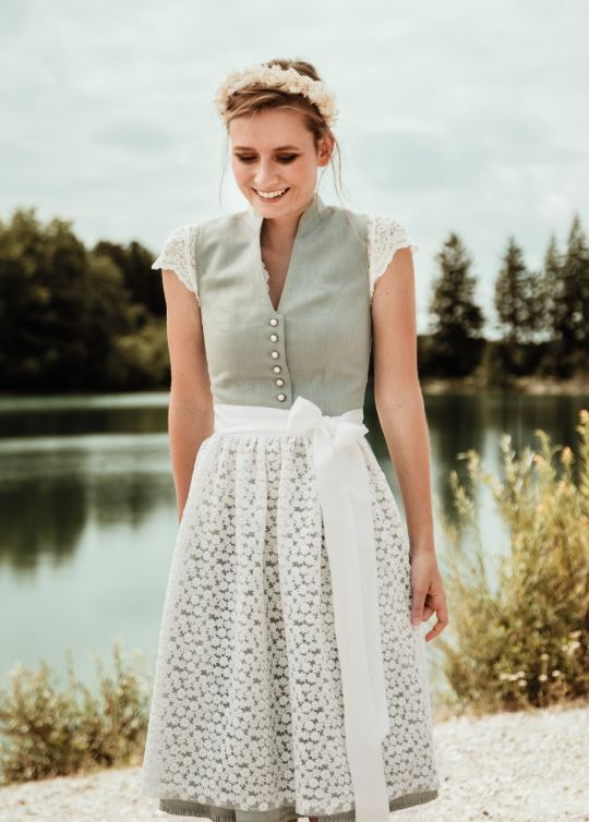 Das Dirdl Xara von Alpenfee besticht durch seine schlichte Eleganz. Die feine Blumenschürze und der Rüschensaum ergeben einen jugendlich romantischen Touch.