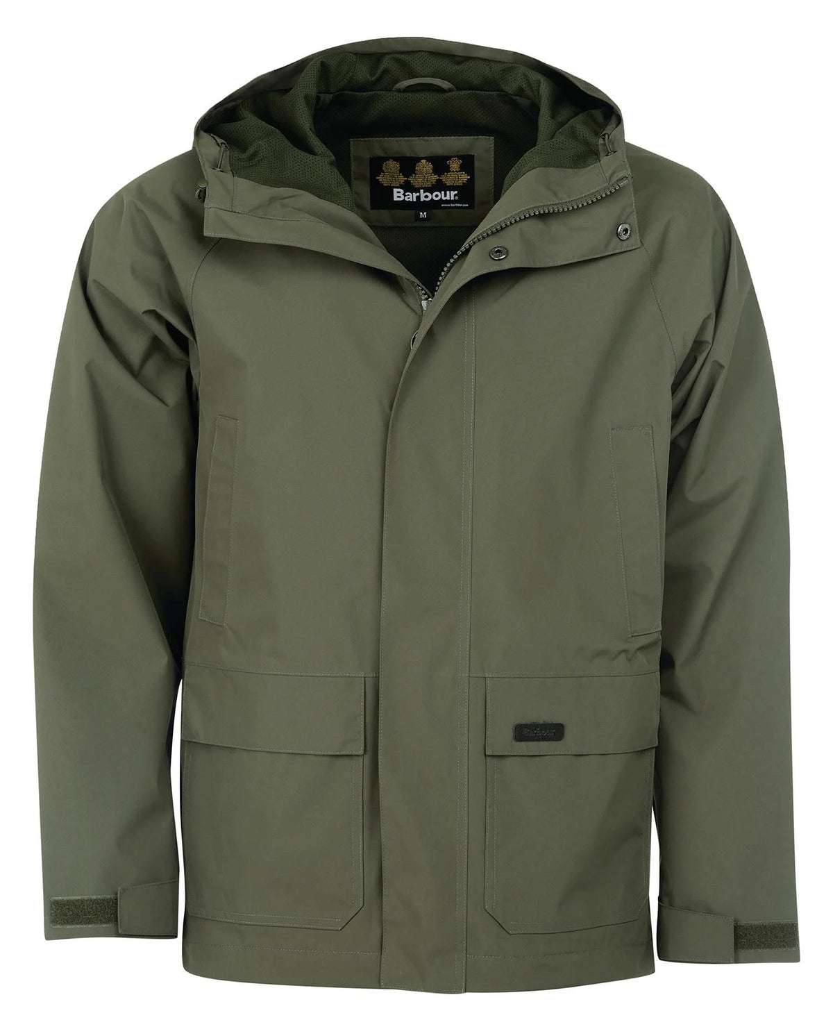 Die schöne leichte Herrenfunktionsjacke Cheviot von Barbour ist wasserdicht und atmungsaktiv und perfekt für nasse Tage und die Übergangszeit. Sie ist ausgestattet mit einen verdeckten Reißverschluss, einen Tunnelzug, zwei Einschubtaschen, 2 Vordertaschen, einer Brusttasche und einre festen Kapuze.
