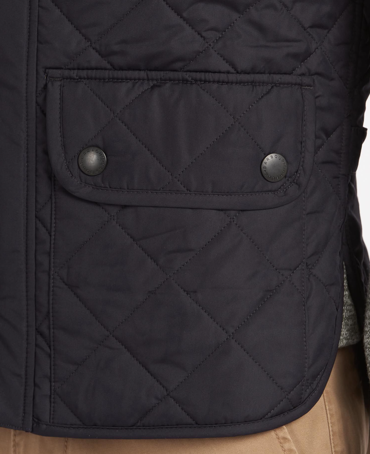 Die Weste Lowerdale von Barbour hat ein zeitloses Design mit einem Diamant-Steppmuster und einen Stehkragen mit weichem, besonders warmem Mikrofaser-Besatz aus.