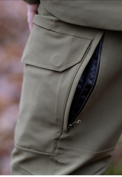 - 2 Taschen an den Unterschenkeln (auf der rechten Seite mit Smartphone-Netzinnentasche)