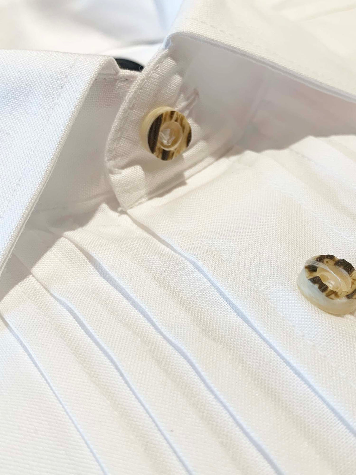 Die Köpfe sind aus Horn und die durchgehende Knopfleiste ist mit Biesen ausgestattet.