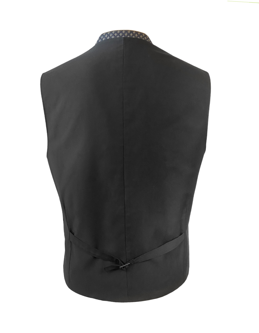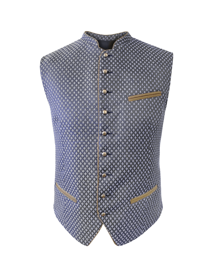 Elegante Trachtenweste aus zart gemustertem Stoff mit edlen Metallknöpfen.