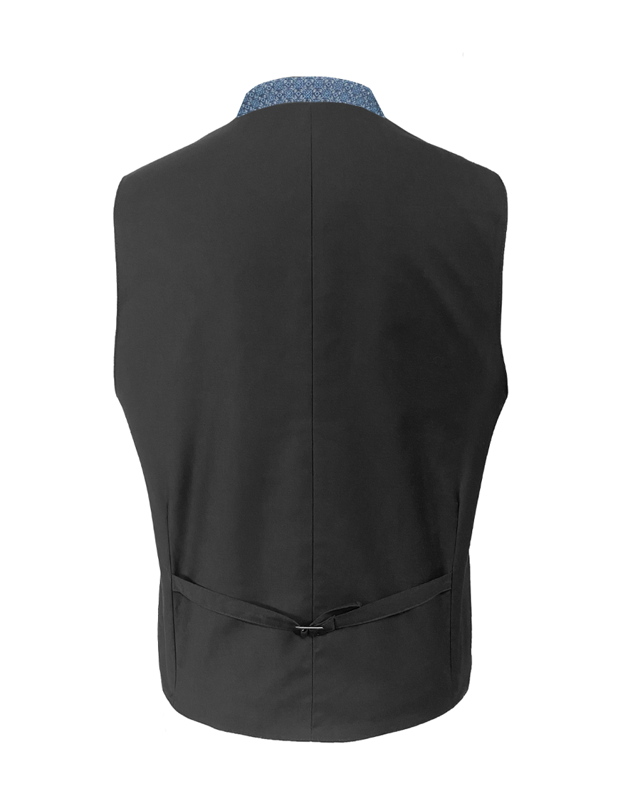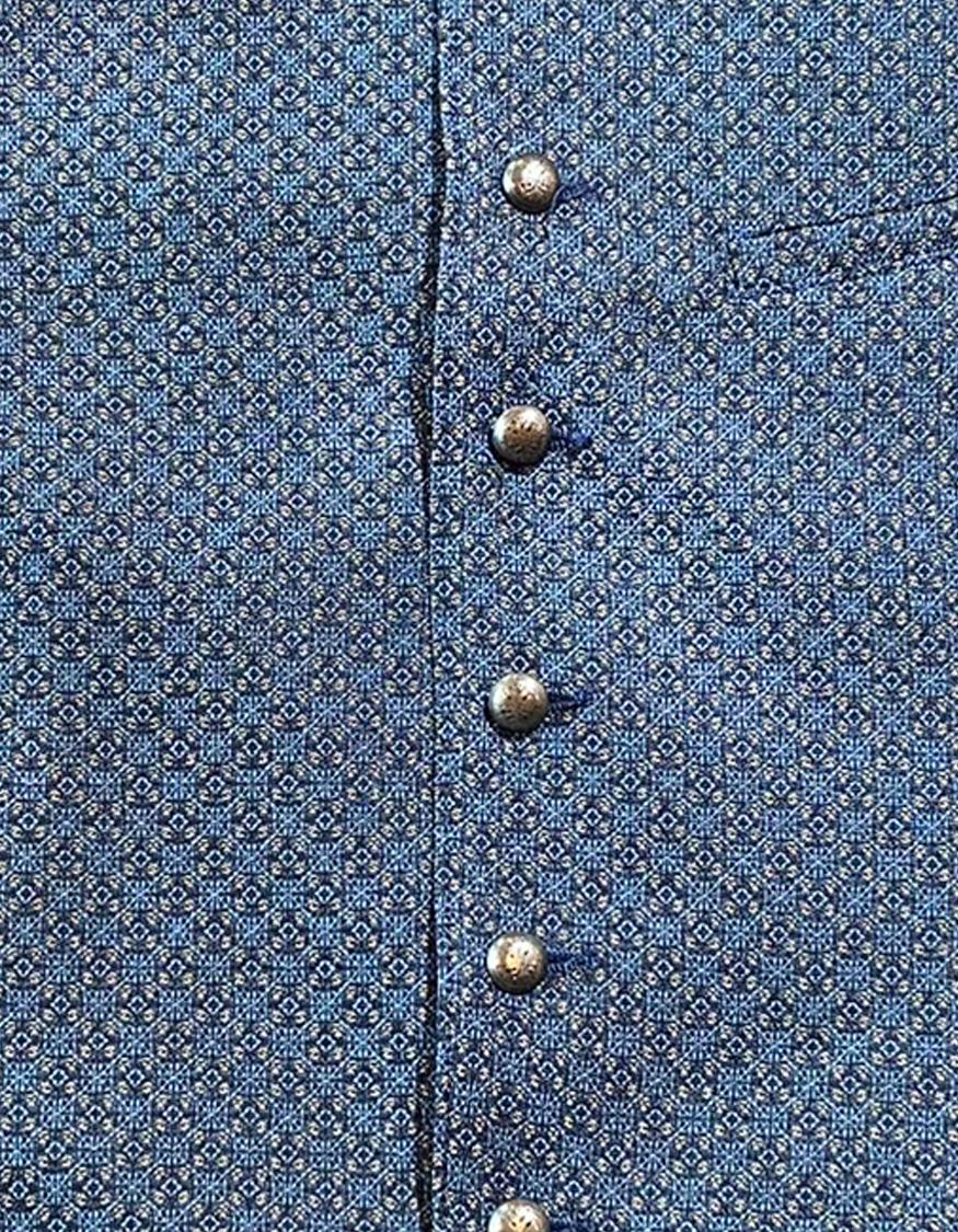 Die elegante Trachtenweste Noah von Hammerschmid vereint traditionelles Design mit modernem Stil. Die Vorderseite besteht aus hochwertigem, fein gemustertem Stoff in verschiedenen Blau- und Beigetönen. Die Rückseite wurde aus schwarzem Baumwollstoff gefertigt und bietet durch den verstellbaren Riegel eine optimale Passform. Klassische Metallknöpfe und dezente Taschen runden das Gesamtbild dieser stilvollen Weste perfekt ab.