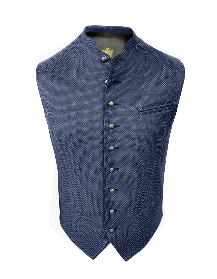 Elegante Trachtenweste aus zart gemustertem Stoff mit edlen Metallknöpfen.