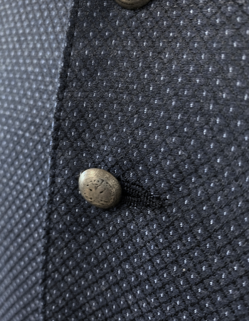 - Knopfleiste mit ornamentierten Metall-Knöpfen