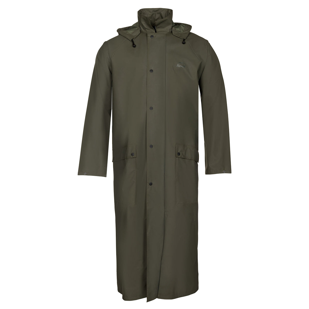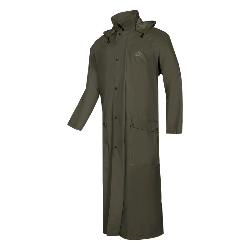 Der Regenmantel von Baleno aus Flexothane ist wadenlang. Er ist wasserdicht, winddicht und atmungsaktiv, und hält selbst dem schlimmsten Regen stand.