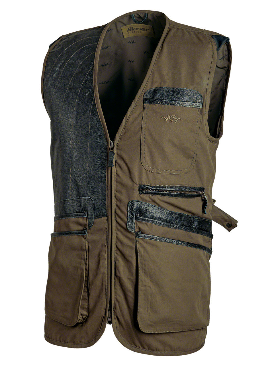Die Blaser Ganzjahresschießweste für Rechtsschützen bietet ein vollständiges Ausstattungspaket für optimales Schießen. Hergestellt aus strapazierfähigem Polyester/Baumwoll-Mischgewebe mit Kunstlederbesätzen im Anschlagbereich, ermöglicht sie ganzjährigen Einsatz. Die seitliche Taillenverstellung bietet individuelle Passform, während die großen Eingrifftaschen vorne Platz für jagdliches Zubehör bieten. Die Brusttasche mit Blaser Argali eignet sich für Handy oder Funkgerät, und eine kleine Reißverschlusstasche vorne bietet weiteren unauffälligen Stauraum. Diese Schießweste vereint Funktionalität, Komfort und Qualität, perfekt für Schießstand oder Jagd.