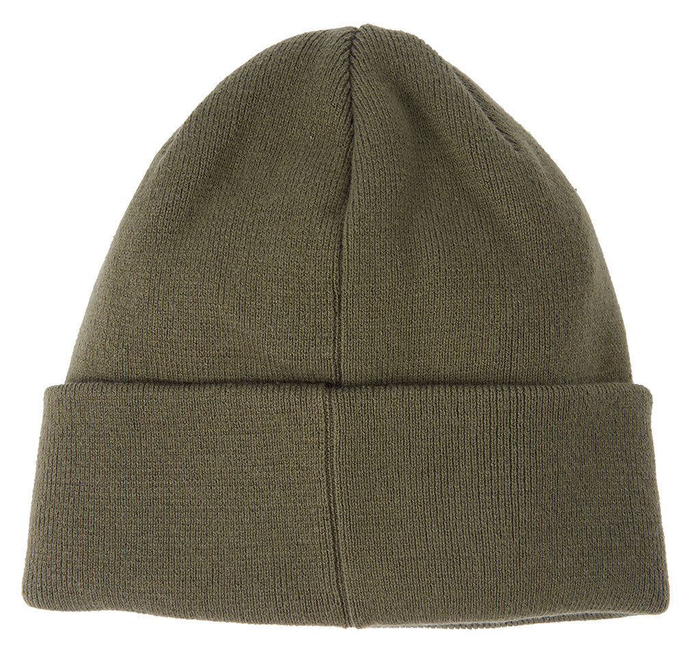 Die Mütze wurde mit einer Umschlagkrempe und einem Logoemblem ausgestattet.