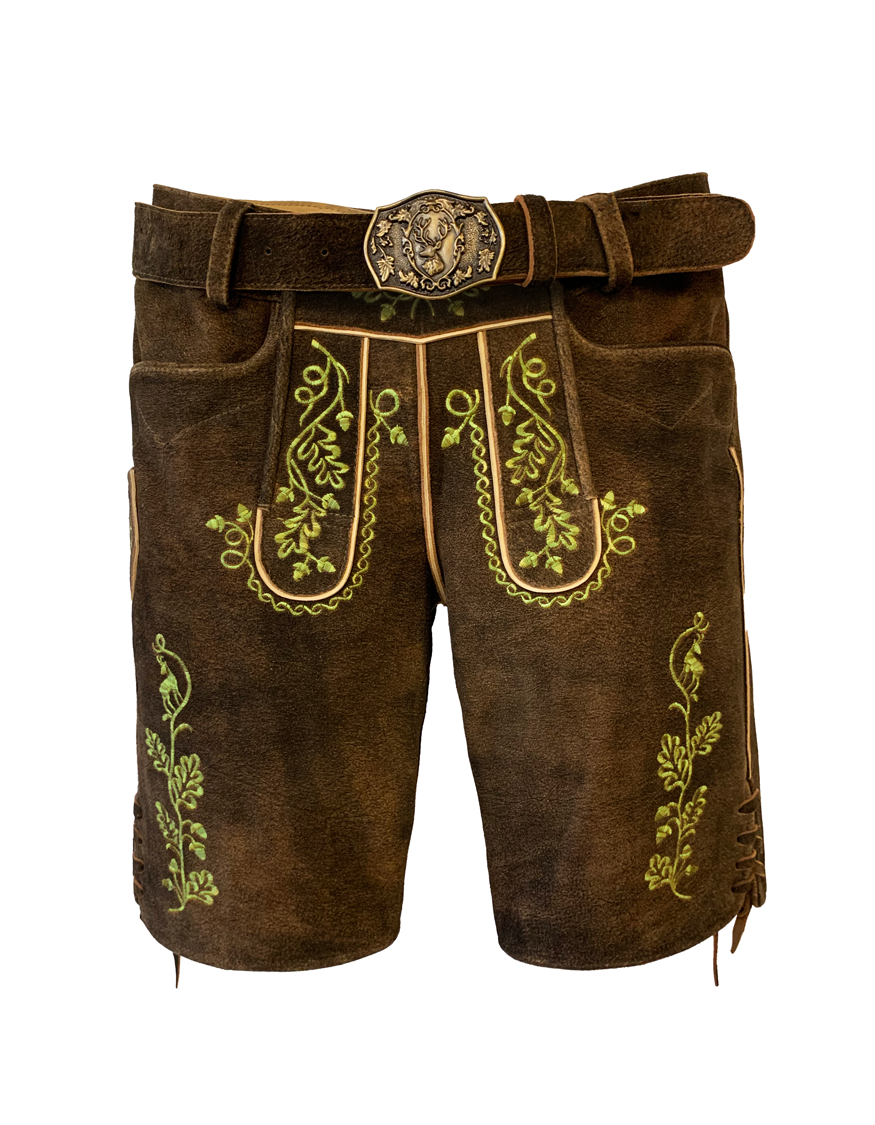 Hirscher Herren Lederhose "Freising" mit grüner Stickerei