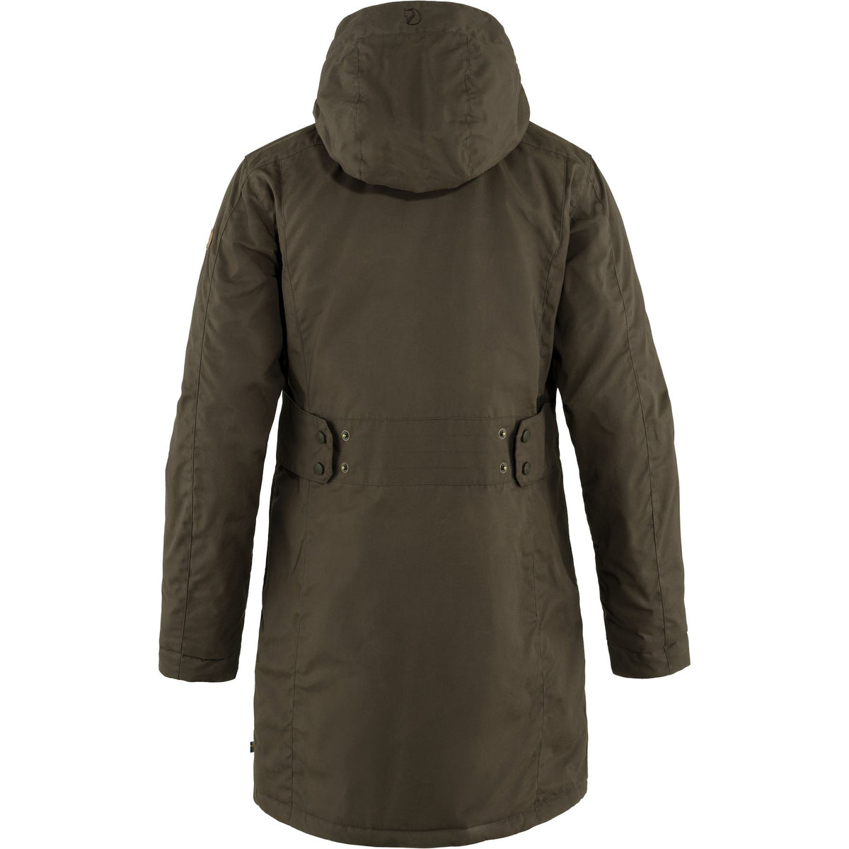 Die Fjällräven Damen Jacke Högvilt wurde aus G-1000 Silent Eco mit wasserdichtem Hydratic-Einsatz und warmer synthetischer Füllung hergestellt. Die Jacke ist warm, knielang, hat eine abnehmbare Kapuze und fleecegefütterte Eingrifftaschen, daher eignet sie sich besonders für kalte Tage und Ansitzjagden.