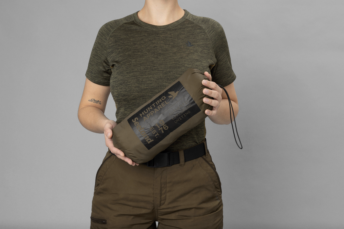 Die Therma Jacke von Seeland eignet sich hervorragend als wärmende Zwischenschicht oder als vielseitige, leichte Außenjacke. Die dehnbaren Seiteneinsätze ermöglichen optimale Bewegungsfreiheit. Sie lässt sich handlich in einem mitgelieferten Beutel verstauen und ist somit eine hervorragende Wahl für die abwechslungsreiche Jagd und andere Outdoor-Abenteuer.