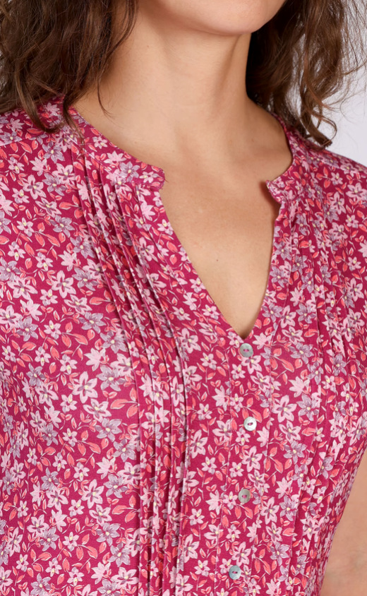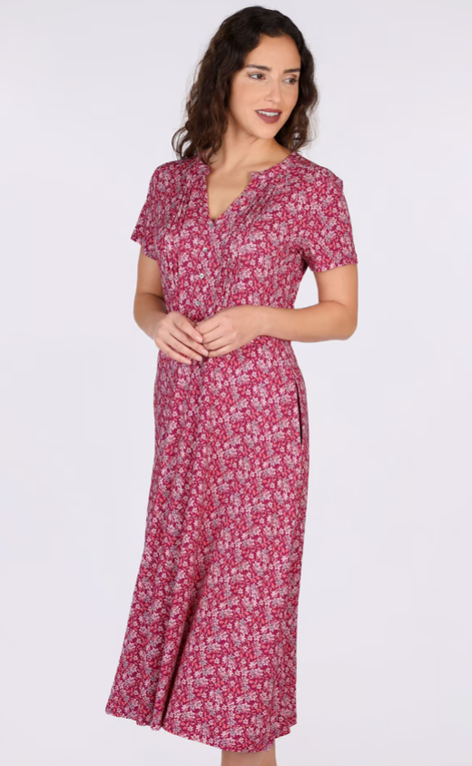 Das Kleid Fariam Anemone begeistert mit femininer Ausstrahlung und moderner Midilänge. Der schmeichelhafte V-Ausschnitt mit feinen Biesen und durchgehender Knopfleiste verleiht dem Kleid eine elegante Note, während das florale Muster für einen frischen, lebendigen Look sorgt.
