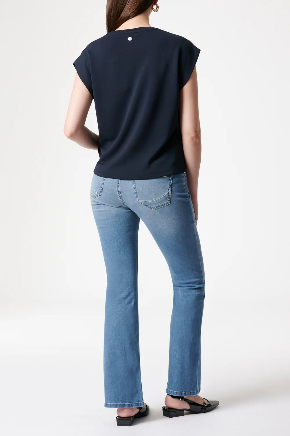 Die Glücksstern Jeans Melina Bea besticht durch ihr sommerliches Hellblau und den modernen Bootcut-Schnitt.
