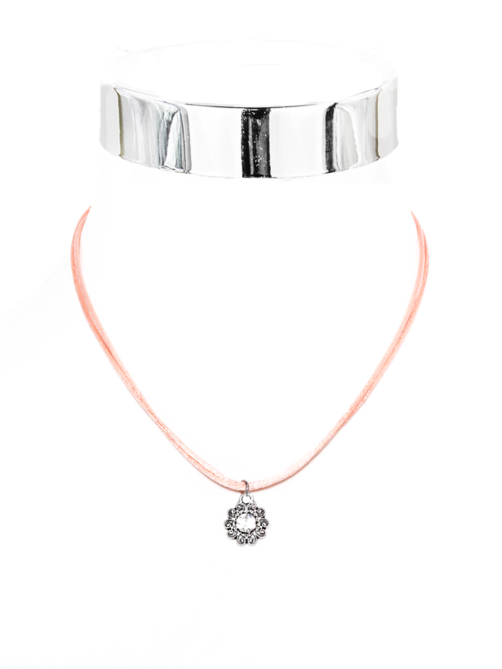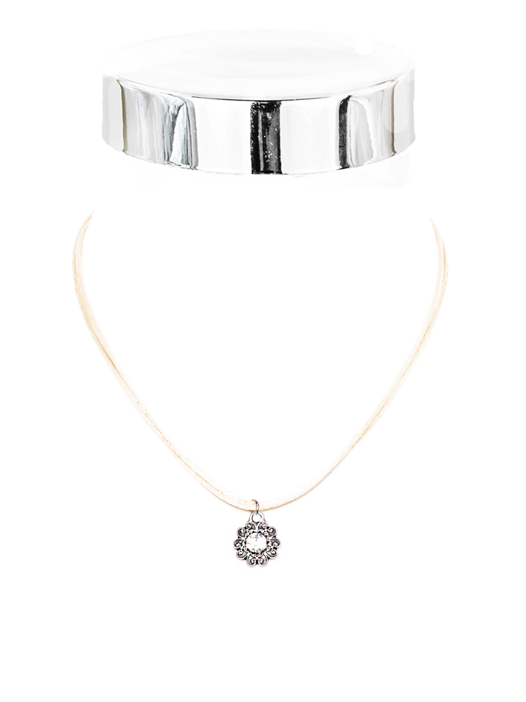 Das Luise Steiner Collier mit Seidenkordel und echtem Swarovski-Stein ist ein elegantes Schmuckstück aus echtem versilbertem Material.