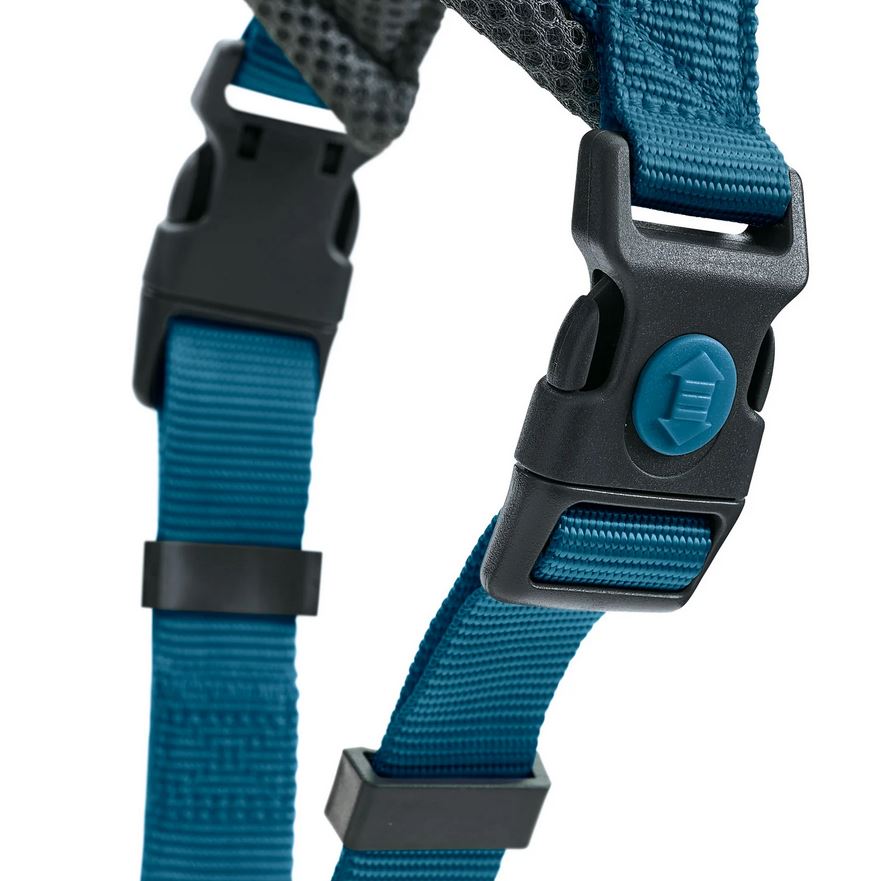 Das Geschirr ist besonders sicher, das sich der robuste Kunststoffverschluss mit einem Handgriff zusätzlich »verriegeln« und ebenso leicht wieder öffnen lässt.