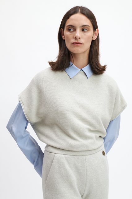 Der kurzarm Pullover EVI ist perfekt für warme Sommertage. Die kurze, lockere Passform im Oversized-Stil sorgt für maximale Bewegungsfreiheit und einen entspannten, mühelosen Look. Rollborten an Ärmeln und Ausschnitt setzen dezente, stilvolle Akzente. Vielseitig kombinierbar – trägt sich solo an warmen Tagen oder lässig über Sweatshirts als moderner Pollunder. Ein zeitloser Klassiker, der natürlich, unkompliziert und feminin wirkt.