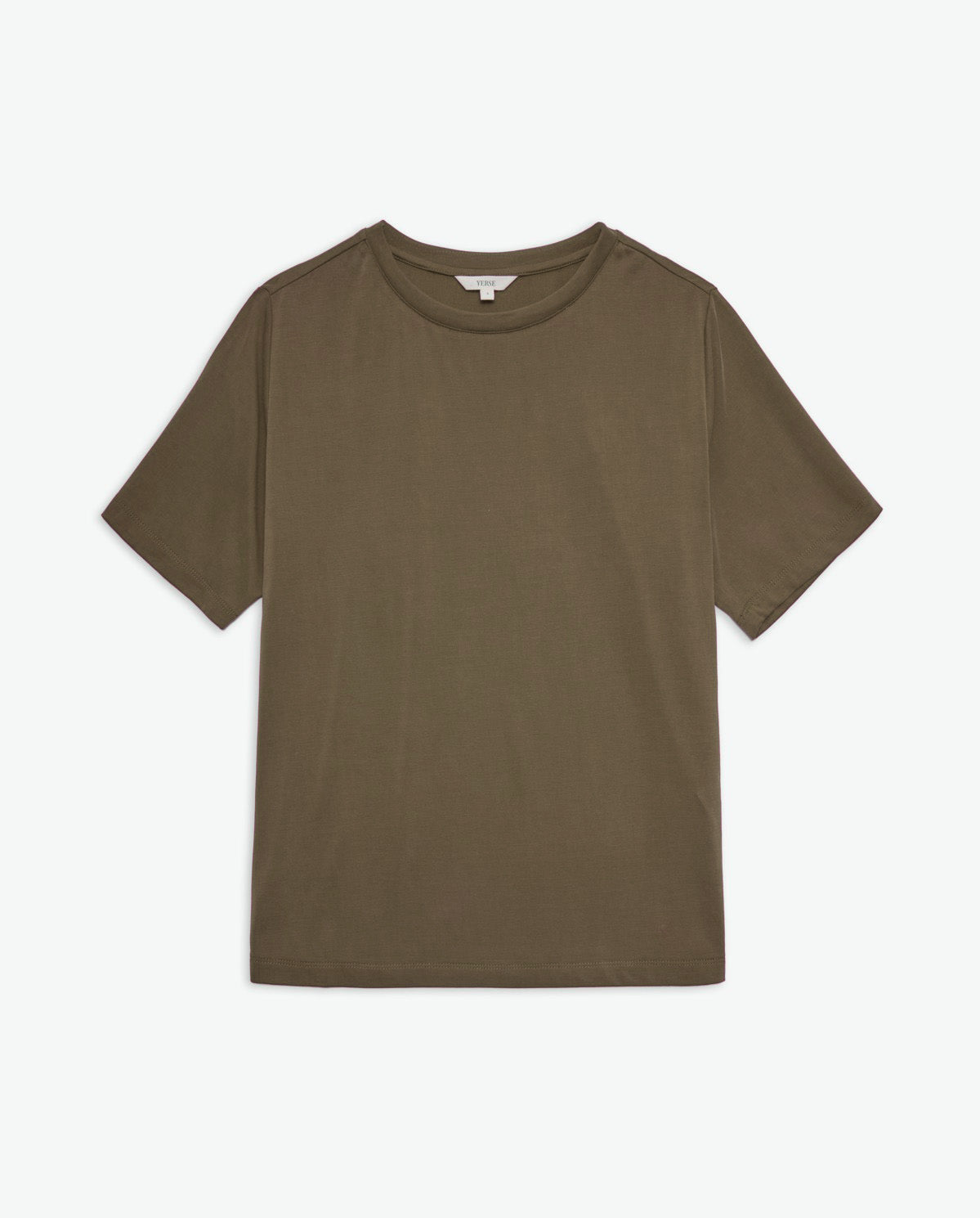 Luftig-leichtes Kurzarmshirt aus einem soften Modal-Mix. Ein weiter, fließender Schnitt und die seitlichen Schlitze am Saum sorgen für maximale Bewegungsfreiheit und ein angenehmes Tragegefühl. Der atmungsaktive Modalstoff liegt seidig auf der Haut, leitet Feuchtigkeit zuverlässig ab und passt sich ideal der Körperform an. Mit klassischem Rundhalsausschnitt – perfekt für entspannte Looks an warmen Tagen.